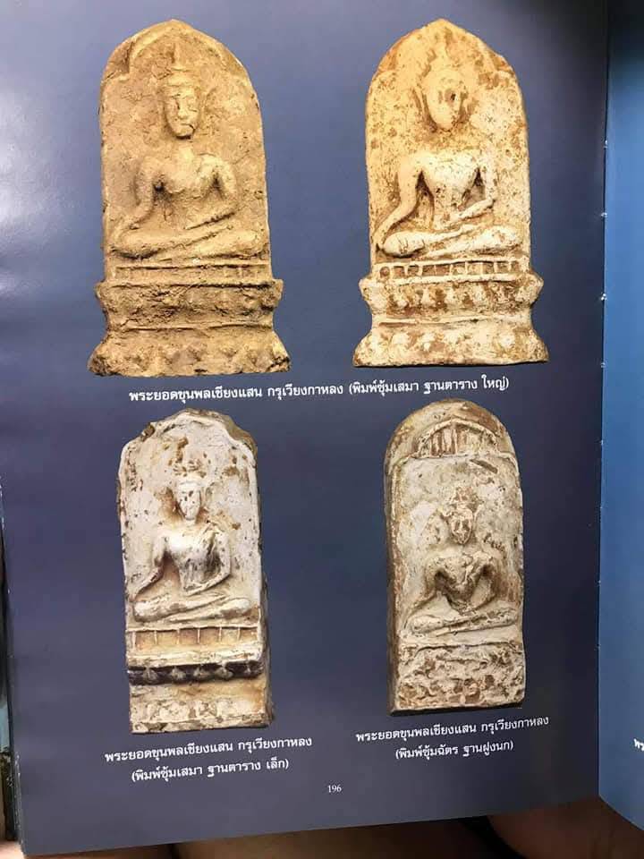พระพิมพ์นี้มีขึ้นทั้งเขตจังหวัดพะเยา ลำปาง และเชียงราย เขตจังหวัดพะเยาขึ้นกรุบ้านต้ำ เขตลำปาง ขึ้นกรุปงถ้ำสันกำแพง เขตเชียงรายขึ้นกรุเวียงกาหลง แต่ละท้องที่มีทั้งเรียกเหมือนกันหรือแตกต่างกันไปบ้าง ลำปางวังเหนือเรียกพิมพ์ฐานยื่น เชียงรายเวียงป่าเป้าเรียกพิมพ์ปลาตัวเดียว หรือปลาสามตัว พะเยาเรียกพิมพ์เสมาฐานสูง แต่ชื่อพิมพ์ที่ใช้เรียกสากล คือพิมพ์ซุ้มเสมาฐานสูง พระยอดขุนพลกรุเวียงกาหลง เป็นพระกรุโบราณที่มีชื่อเสียงและนิยมสะสมสูง พบที่บริเวณเมืองเก่าเวียงกาหลง อ.เวียงป่าเป้า จ.เชียงราย มีลักษณะเด่นคือเป็นพระเนื้อดินเผา สีขาวนวล ขาวอมเหลือง หรือแดงอ่อน พิมพ์ที่นิยมคือ พิมพ์นก-ปลา (พิมพ์ยอดขุนพล)